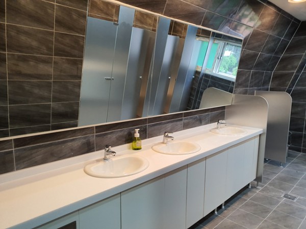 하나님의 은혜로 1,2,3층 화장실과 현관 로비 인테리어 공사가 잘 마무리 되었습니다.
