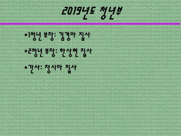 ilsim Contents 일심나눔터 공지사항 경조부 게시판 행사갤러리 새가족소개 섬김부서 유아부 유치부 유년부 초등부 학생부 청년부 남전도회 여전도회 예배설교 목사님설교 초청강사설교 특별영상 찬양 교회소개 교회비전 예배안내 섬기는이들 교회발자취 오시는길 청년부 청년부 > 섬김부서 > Home 청년부 2019 청년부 연간계획 및 교사 페이지 정보 작성자 관리자 작성일19-07-23 10:15 조회7,093회 댓글0건 다음글 목록 본문 2019 청년부 연간계획 및 교사 댓글목록 등록된 댓글이 없습니다. 다음글 목록